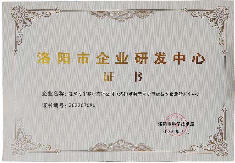 洛陽(yáng)市企業(yè)研發(fā)中心證書